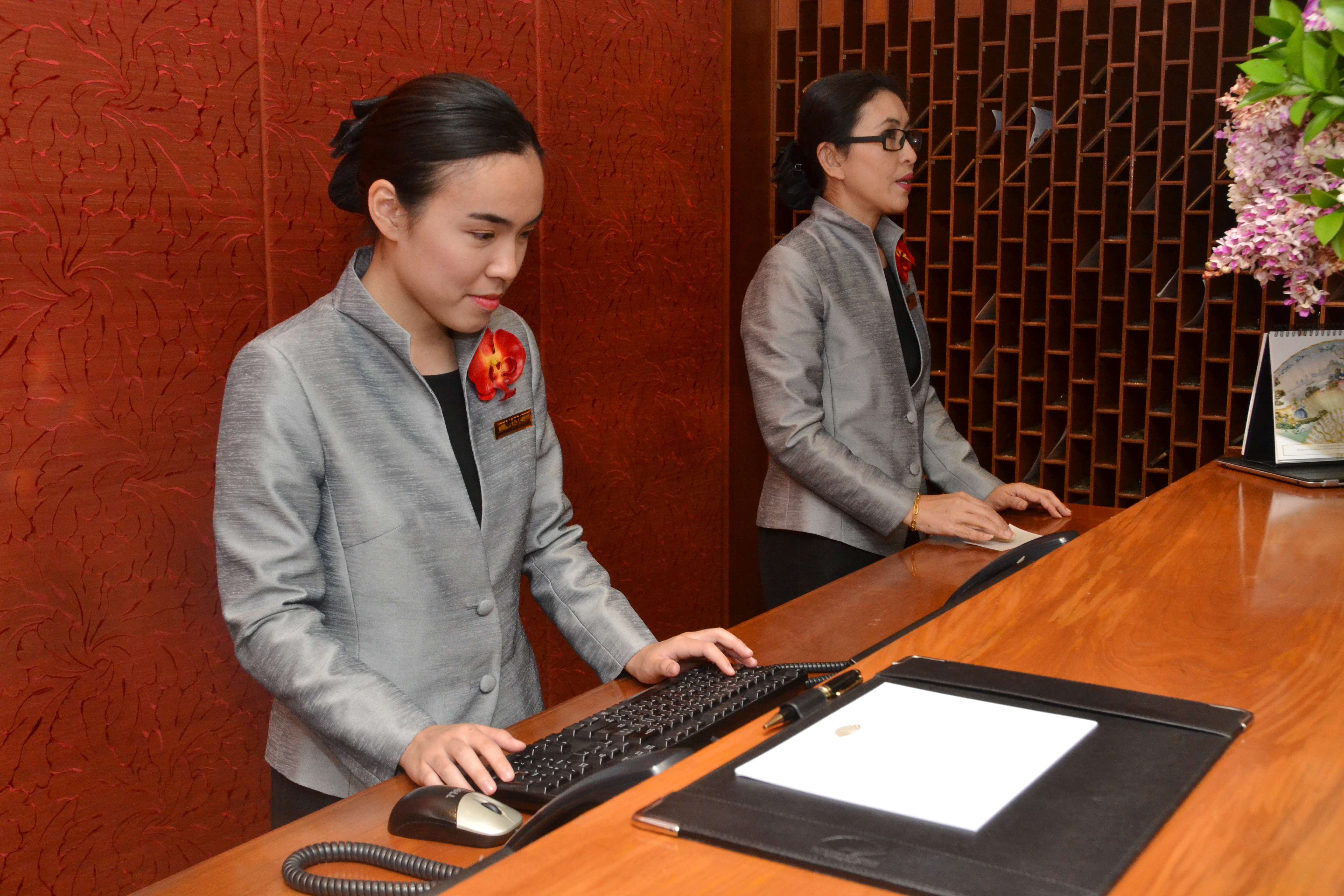 ขั้นตอนและระบบการลงทะเบียนเมื่อลูกค้าติดต่อเข้าห้องพัก ตรวจข้อมูลประวัติ และความต้องการพิเศษของลูกค้า การเเก้ปัญหาเฉพาะหน้า การต้อนรับเเขกระดับสูงของประะเทศ การควบคุมข้อมูลของหน่วยงานราชการ การใช้คอมพิวเตอร์ การเก็บข้อมูลลูกค้า และการประะสานงานกันระหว่างเเผนก
