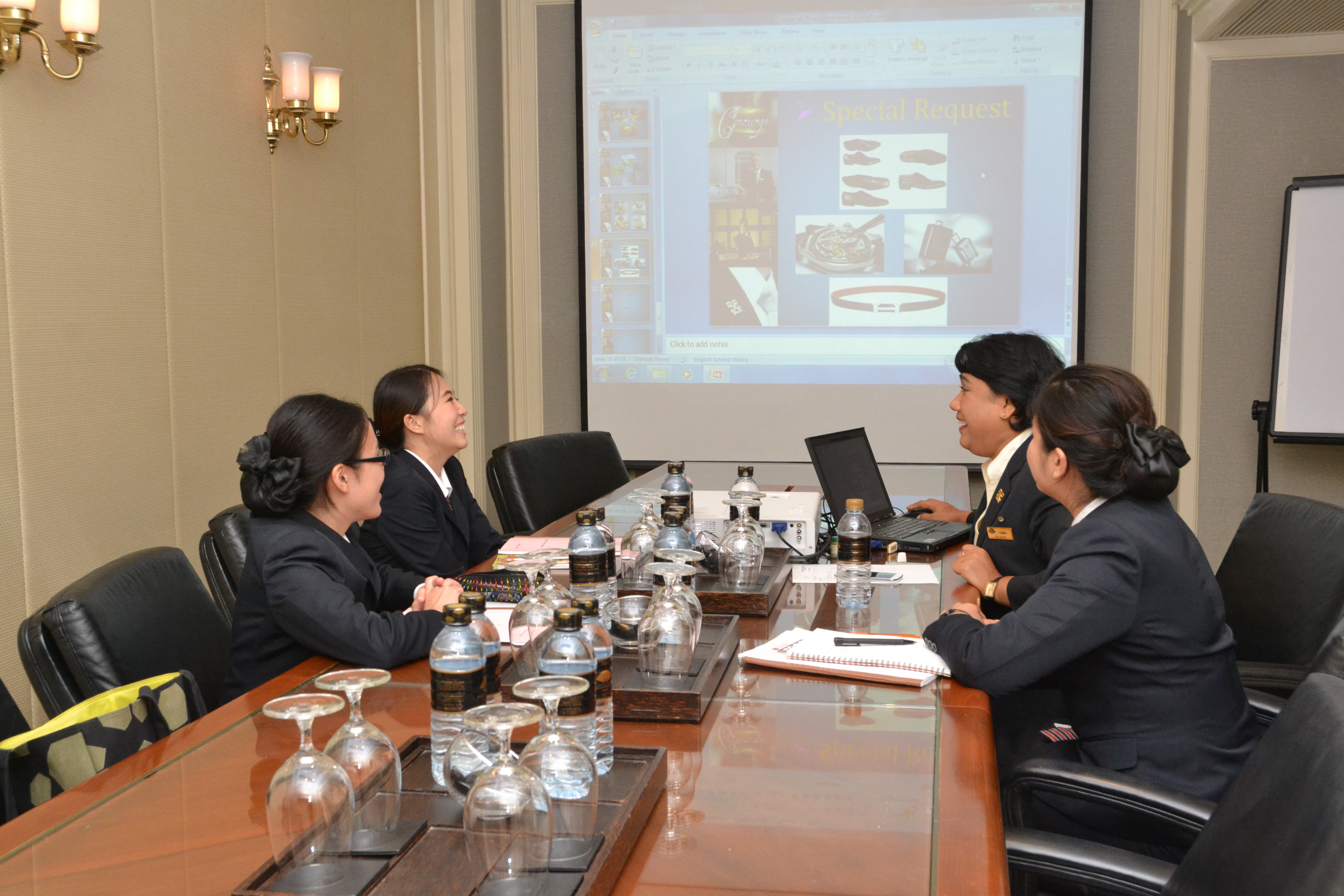ศึกษาเกี่ยวกับวัฒนธรรมเเละวิถีการดำเนินชีวิตของคนไทย นำจุดเด่นของบุคลิกภาพที่สื่อถึงความเป็นไทยมาใช้ปฏิบัติในงานบริการและการต้อนรับเเบบไทย ซึ่งถือเป็นหัวใจหลักของโรงเเรมแม นดาริน โอเรียนเต็ล กรุงเทพฯ และศึกษาด้านมารยาททางสังคมและวัฒนธรรม ในสิ่งที่ควรกระทำหรือไม่ควรกระทำที่เเตกต่างกันของเเต่ละวัฒนธรรม ให้สามารถนำความรู้มาปฏิบัติต่อลูกค้าได้อย่างถูกต้อง